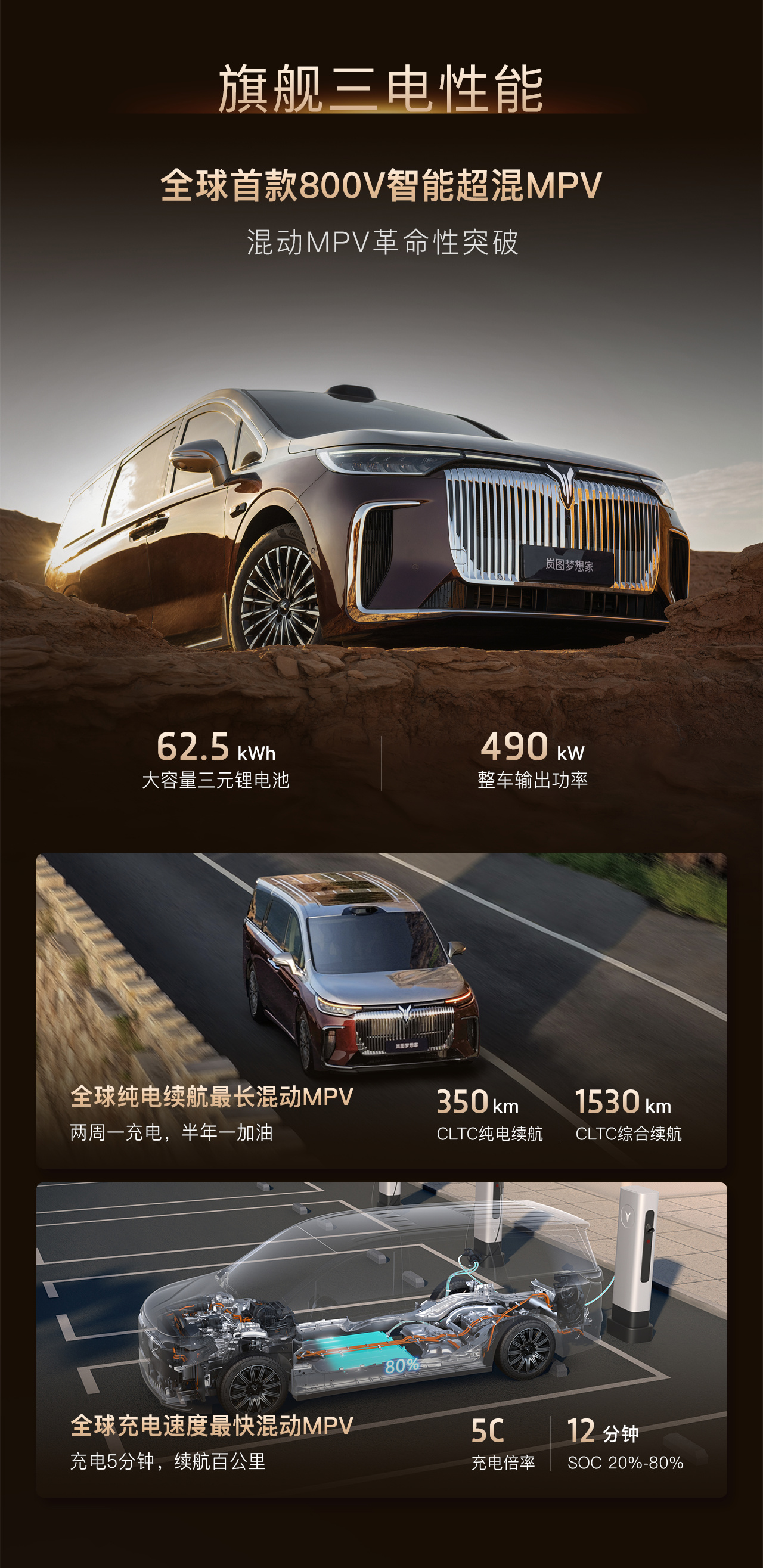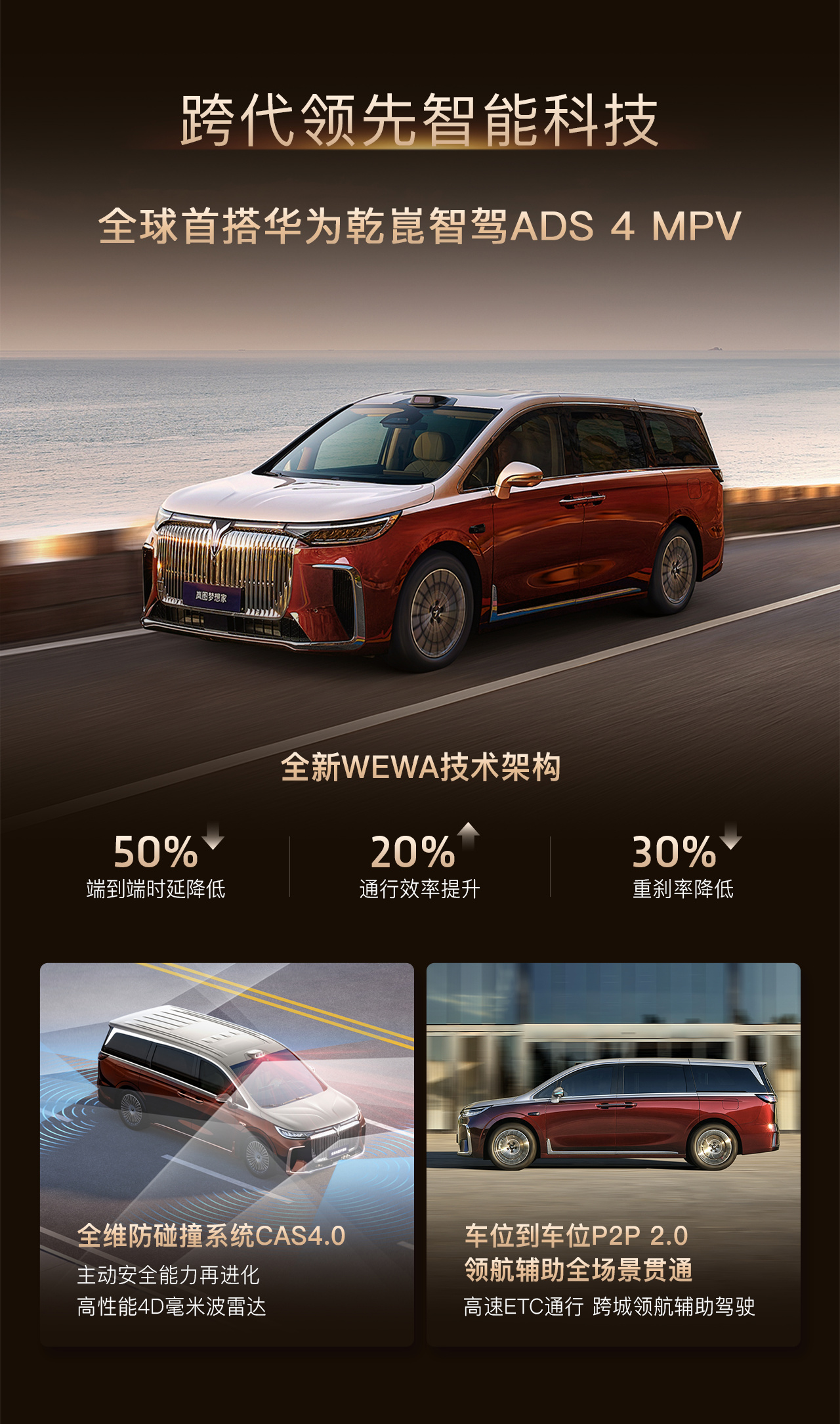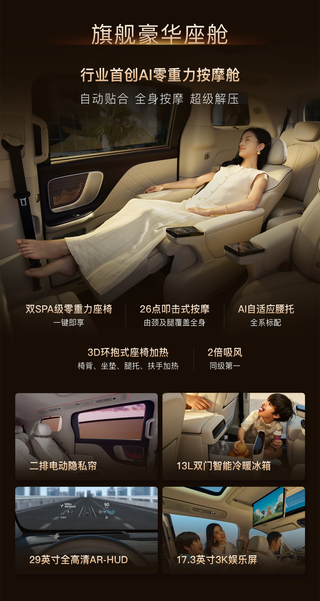 全球首款 800V 智能超混 MPV:全栈 800V 高压 SiC 碳化硅平台、5C 超级快充、490kW 整车输出功率全球领先纯电续航最长混动 MPV:CLTC 纯电续航 350km、62.5kWh 三元锂电池、CLTC 综合续航 1531km全球领先充电速度最快混动 MPV:5C 充电倍率、12 分钟 SOC 20%-80%、峰值充电功率 320kW全球首搭后轮转向混动 MPV:5 米 3 车长一把掉头、±5 度后轮转角、蟹行模式全球首发 AI 零重力按摩舱:全系标配 AI 自适应腰托、双零重力座椅一键启动、同级第一两倍吸风全球首发 26 点叩击式座椅按摩:26 点由颈及腿全身覆盖、叩击式放松疏通经络激活气血全球首搭华为乾崑 ADS 4 MPV:全新 WEWA 技术架构、4D 毫米波雷达、车位到车位全场景贯通 2.0、同级第一全向防碰撞 CAS 4.0全球首搭鸿蒙座舱 5 MPV:手车互联无缝流转、HSpace-Link 智慧互联美林配资提示:文章来自网络,不代表本站观点。